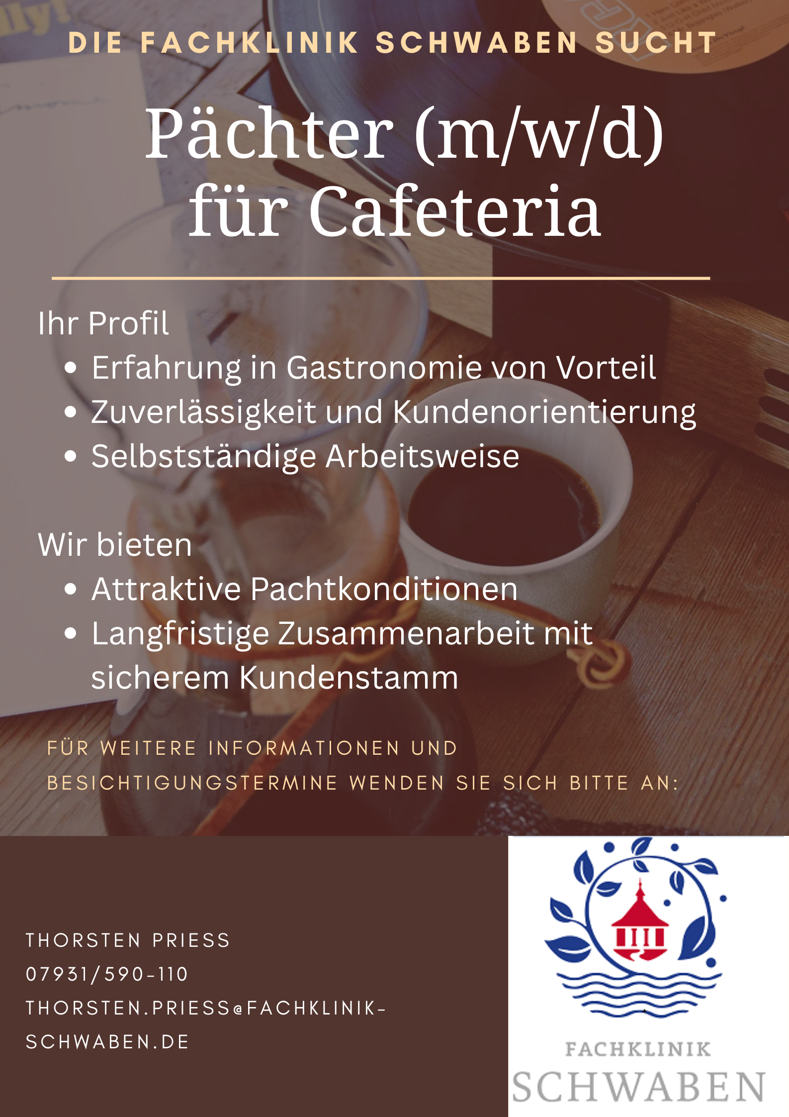 19.08.2025 // Jetzt bewerben: Pächter für unsere Klinikcafeteria (m/w/d)